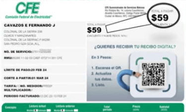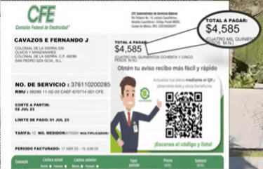 Recibo de $4,585 - Reducido a $59 (Residencial)
